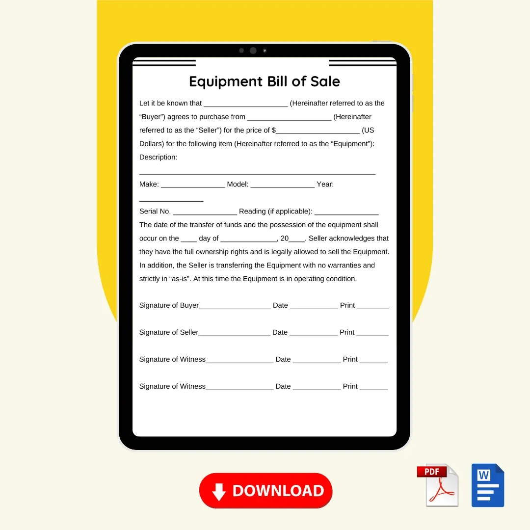 Printable Equipment Bill of Sale Form Template [Word Editable]